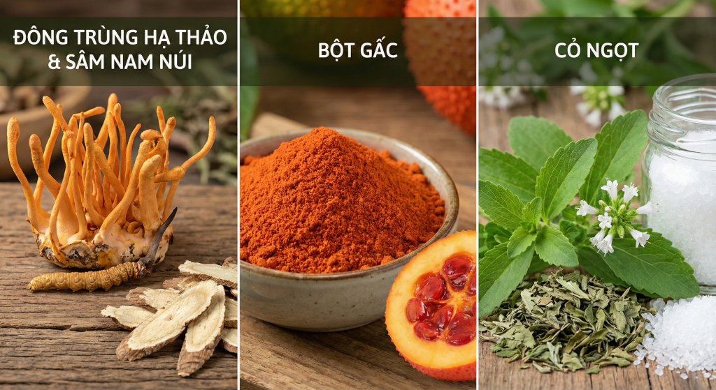 Bổ sung Đông trùng hạ thảo, Sâm Nam núi giúp bồi bổ thể lực, tăng cường sức đề kháng và hệ miễn dịch.