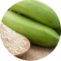 Chứa 30% tinh bột kháng RS2 từ chuối xanh, hỗ trợ tiêu hóa, ổn định đường huyết và cân bằng sức khỏe chuyển hóa.